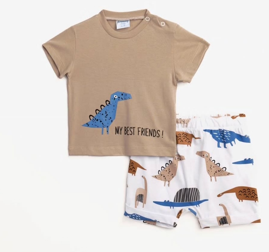 Conjuntos 2 piezas algodón short blanco+ camiseta manga corta mocca Dino