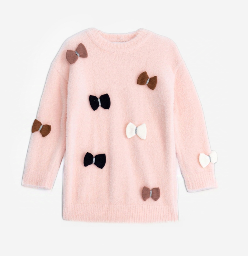 Jersey-vestido punto rosa lazos niña infantil